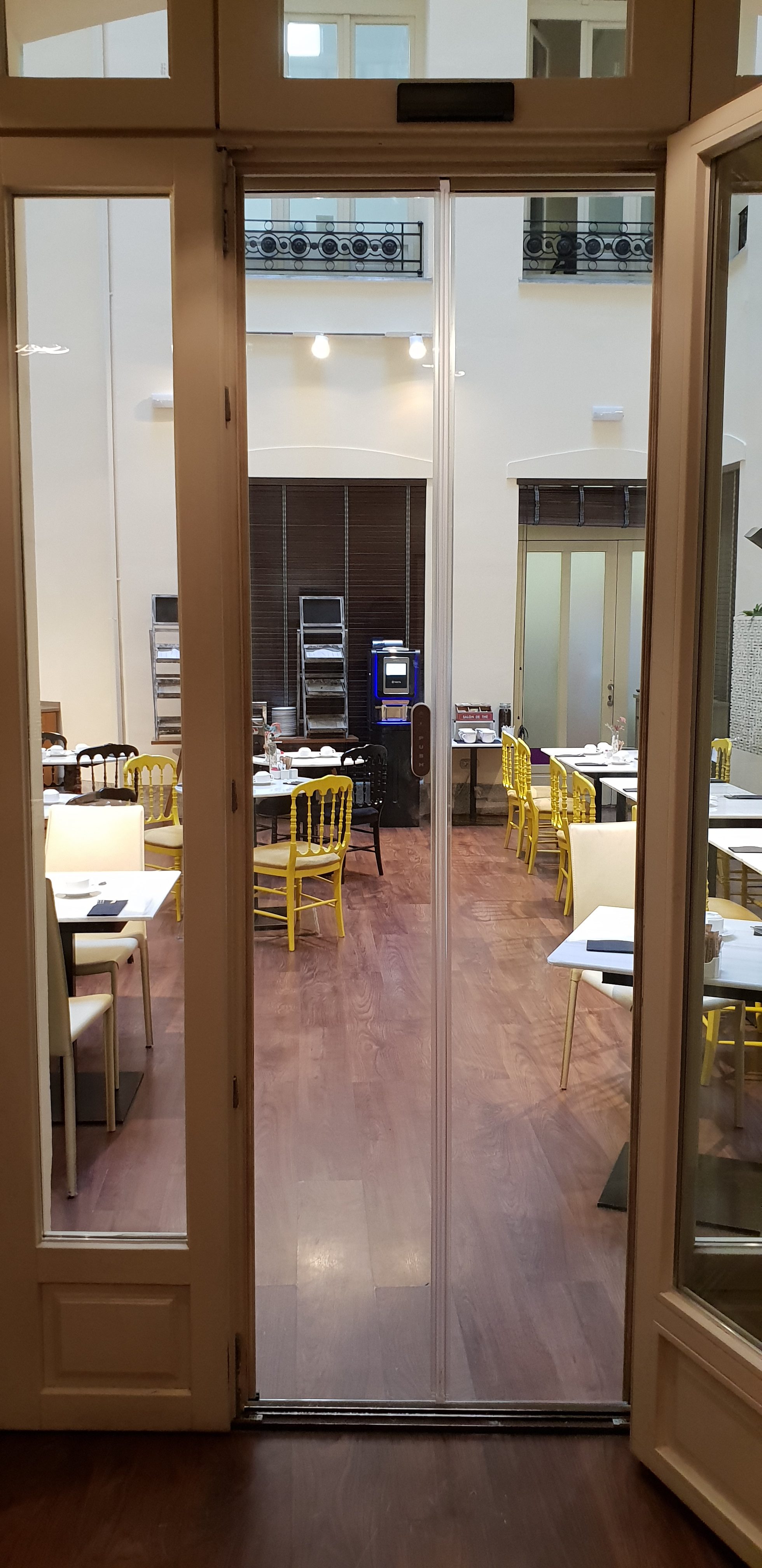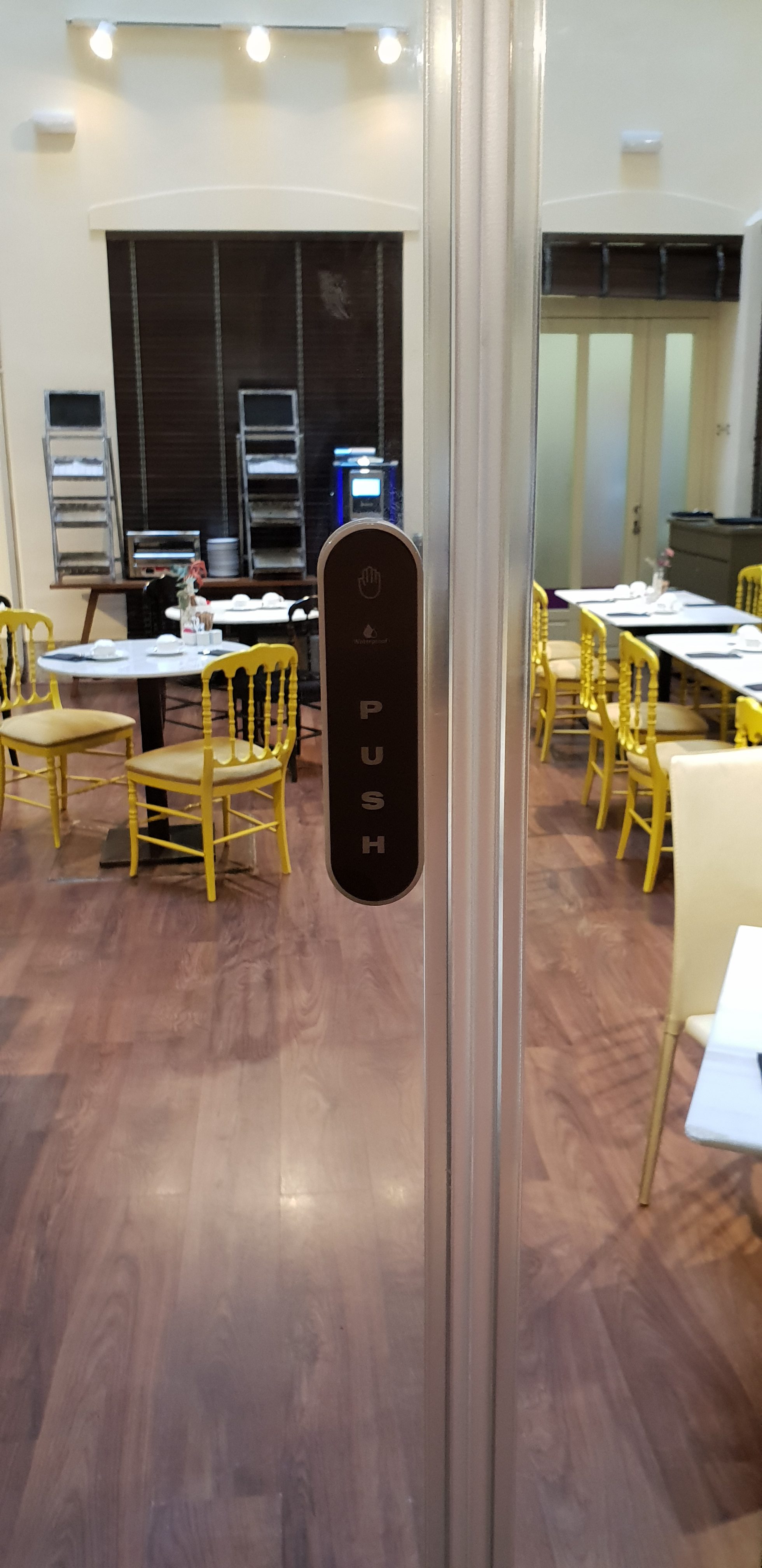 Automatizando una puerta ya existente, no se necesita tocar ni las puertas ni los pulsadores para que se abran, disminuyendo el riesgo de un posible contagio por cualquier virus.